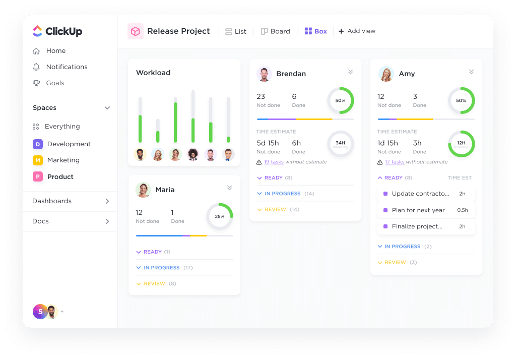 ClickUp se adapta a todo tipo de empresas, sea cual sea su tamaño, y eso hace posible una gestión de proyectos más eficaz. Presenta una interfaz intuitiva, flujos de trabajo personalizables e integraciones muy potentes.