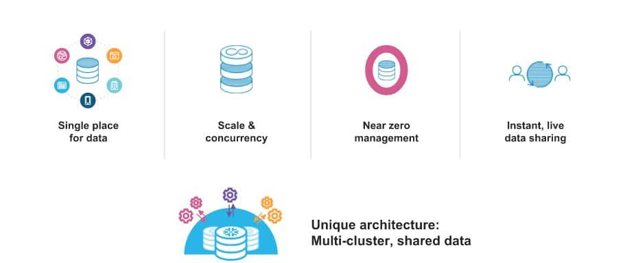 La nube de datos de Snowflake funciona como una plataforma de datos avanzada proporcionada bajo un esquema SaaS (software como servicio). Snowflake le permitirá el almacenamiento, procesamiento y el diseño de soluciones analíticas de datos más rápidas, más fáciles de usar y mucho más flexibles que las ofertas tradicionales.
